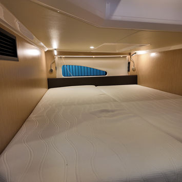 nagelneue Bavaria SR35. Dieses Schiff besitzt alles, was das Herz begehrt. Komfortpaket, Sonnenschutz, Schiebedach, Hecksitzgruppe mit absenkbarem Tisch für die Sonnenliege. Großes Doppelnavidisplay, Generator, Klima, Leder u.v.m.