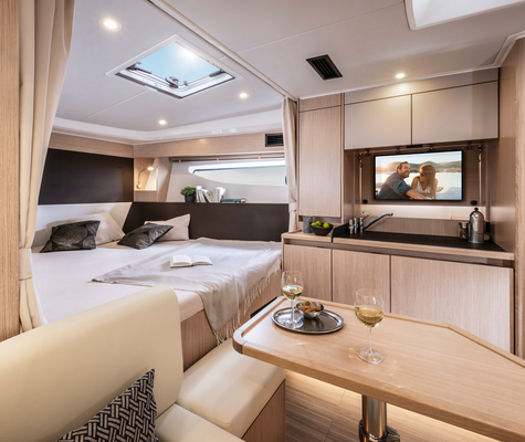 Unter Deck der BAVARIA SR36 soll man sich einfach nur wohlfühlen und muss auf nichts verzichten. In der Bugkabine mit ihrem großen Doppelbett und den Schränken mit extra viel Stauraum sind Gäste an Bord der BAVARIA SR36 immer willkommen. Die Eignerkabine ist eine echte Suite, mit einem über zwei Meter breiten Doppelbett, das sich schnell in zwei Einzelkojen umbauen lässt.