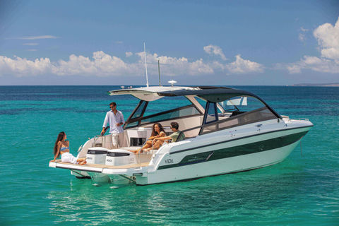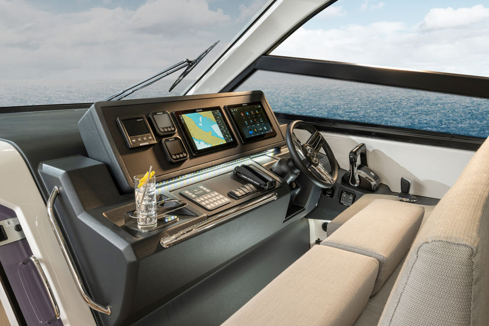 Das überarbeitete Cockpitkonzept bietet mehr Raum, mehr Komfort und mehr Flexibilität: eine großzügige Lounge mit variablem Tisch, integrierter Wetbar und wandelbarer Hecksitzbank, die sich im Handumdrehen zur Sonnenliege verwandeln lässt. Besonders praktisch ist die neue Walk-Around Badeplattform, die von beiden Seiten zugänglich ist – ideal zum Baden, Anlegen oder einfach zum Genießen des Moments auf Augenhöhe mit dem Wasser.